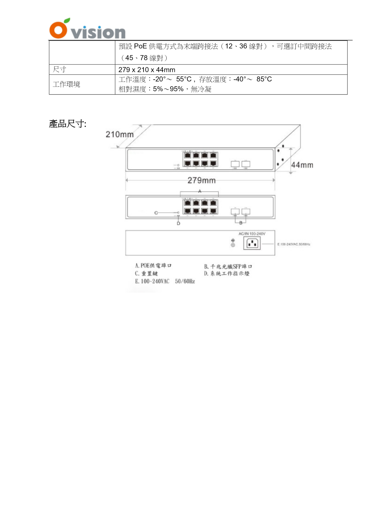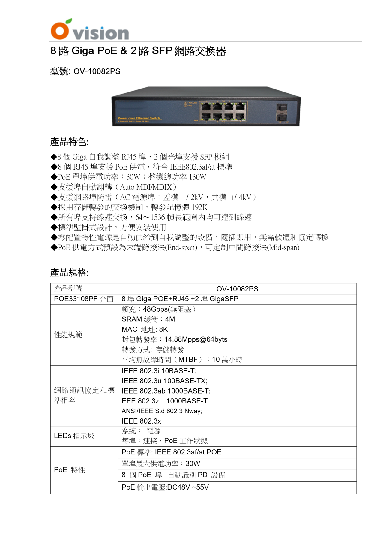 > 8埠PoE 130W+2埠SFP(OV-10082PS)